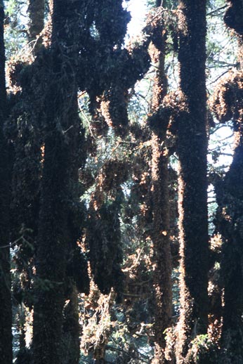 Nachts "erstarren" die Falter und haengen in grossen Trauben an den Fichtenzweigen.