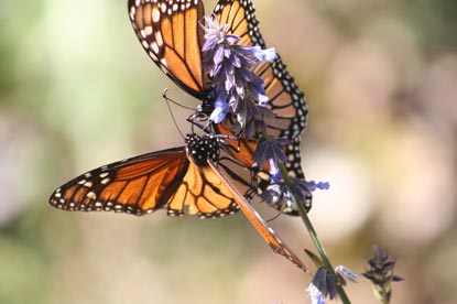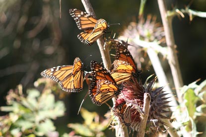 Zum Ueberwinter fliegen die Monarch - Schmetterlinge ueber 3000 km von den USA und Kanada bis in die Berge von Zentralmexiko!
