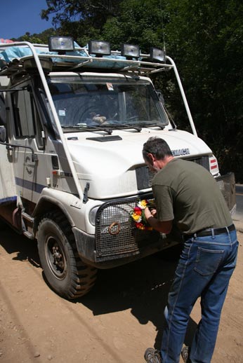 Knuffi bekommt ein Kraenzlein und der Fahrer seinen Lieblingskuchen!