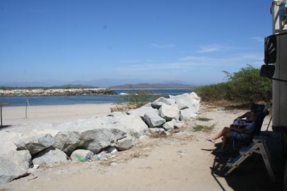 Wir stehen direkt am Zufluss der Lagune ins Meer und geniesen die Einsamkeit!