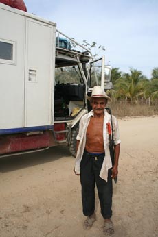 PedrĂ³ (82J.) hat sich extra fein gemacht um uns den Weg zu unserem Paradies zu zeigen!